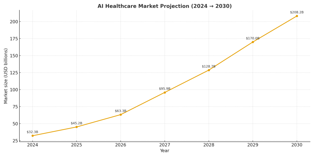 4. The Market Opportunity Is Enormous: With the healthcare AI market projected to reach $208.2 billion by 2030, companies that establish leadership now will shape the industry’s future.