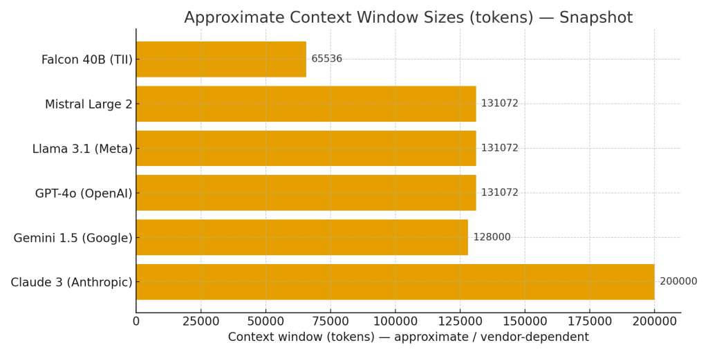 Some models accept massive context windows — hundreds of thousands of tokens. Very large contexts simplify long-document workflows but increase request cost and latency. For many heavy-document applications, long-context models reduce complexity by removing the need for an elaborate retrieval/aggregation pipeline.