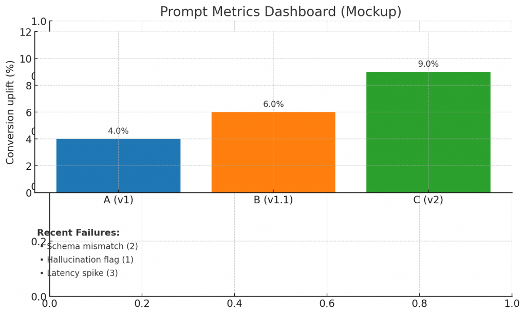 Run multiple prompt variants behind flags and measure product KPIs (conversion, time-to-task, NPS).